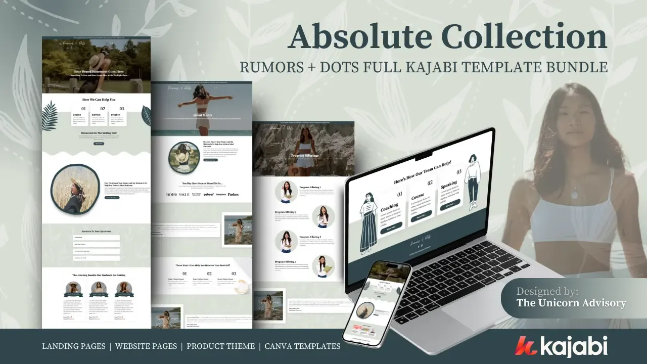 Your absolute template collection comes with the following Kajabi templates in Rumors & Dots Fern design: